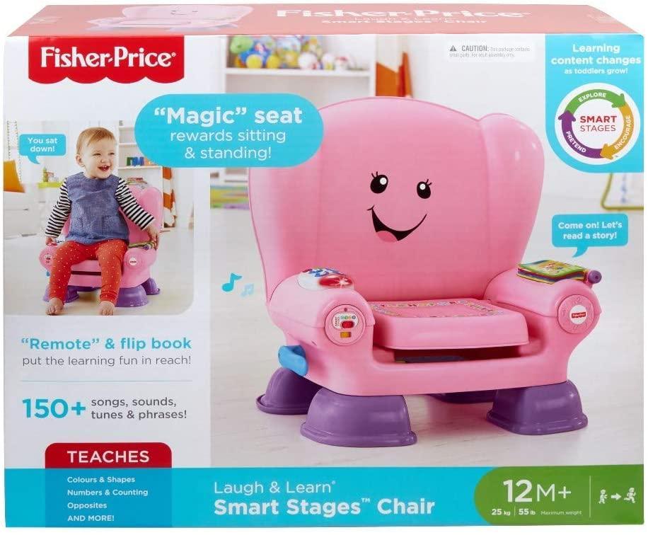 The Fisher-Price Laugh & Learn Smart Stages Activity Chair is babyâs very own place to sit and discover new things. Hours of fun with the Fisher-Price Laugh & Learn Smart Stages Music Toy Chair listening to ABCs, 1-2-3s, colours, shapes, and more!