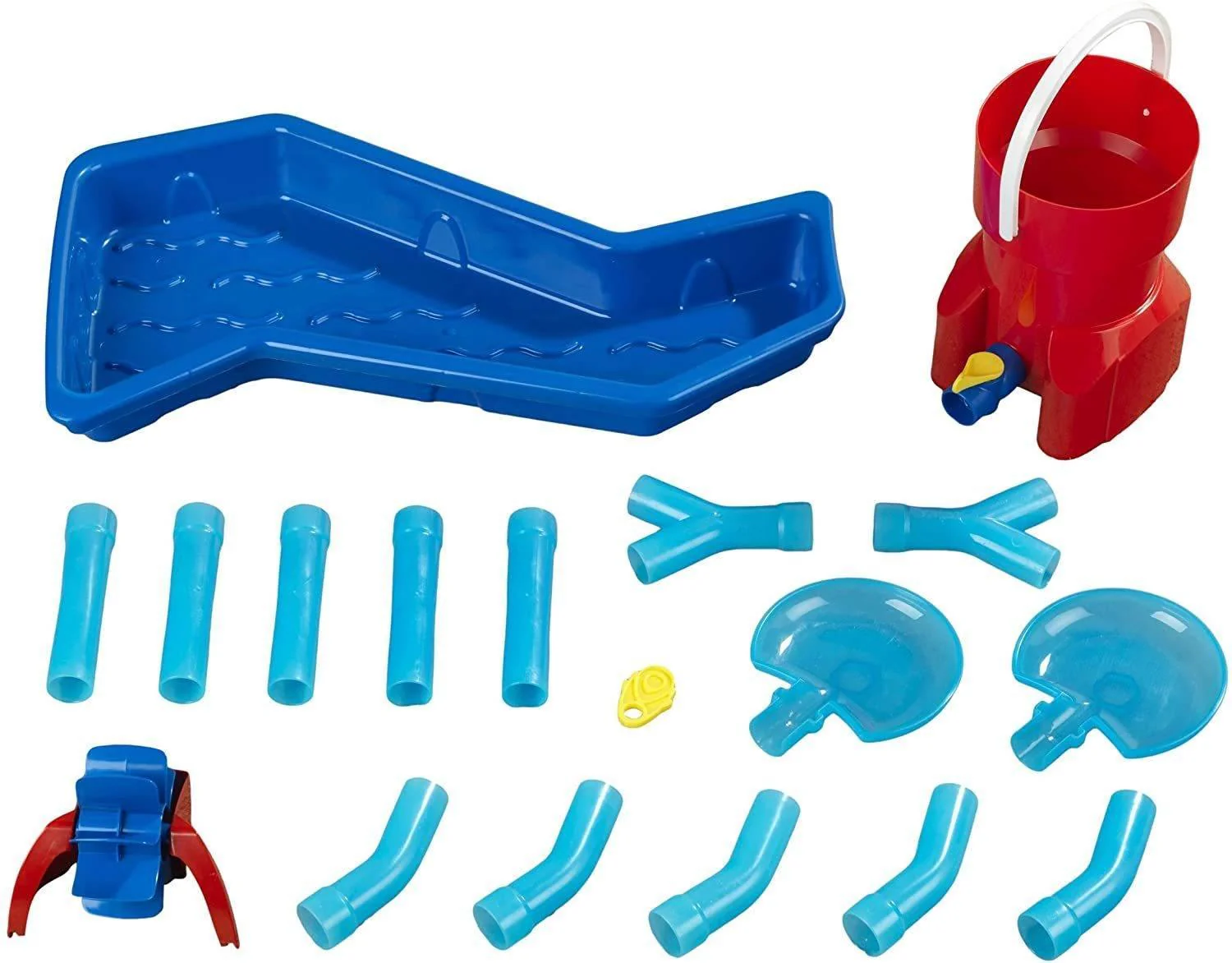 - Supplied with the following accessories: 1 x water tower, 5 x pipe, straight, 5 x pipe, bend, 2 x Y pipe, 2 x cascade basin, 1 x water tap, 1 x water seal, 1 x water wheel + bracket and 1 x basin
