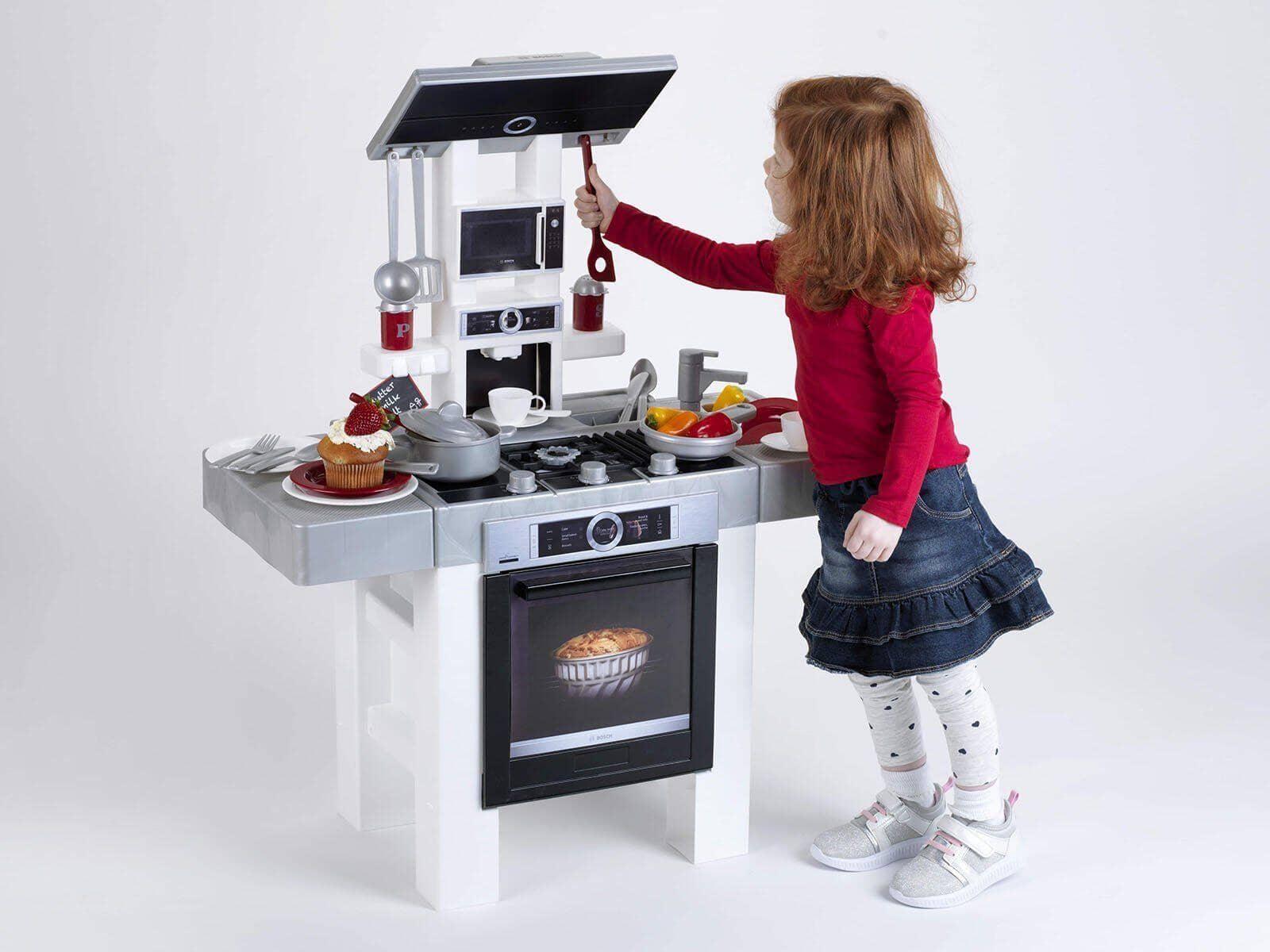This comprehensive play kitchen faithfully reproduces the look and feel of a genuine Bosch kitchen, allowing children to cook, bake and prepare meals just like the grown-ups. The sleek, modern design fits perfectly into any playroom whilst providing endless hours of creative fun.
