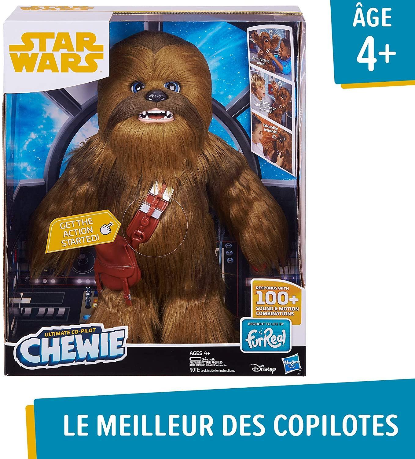 Chewbacca (âChewieâ to his best Pals) is famous as Han Soloâs loyal friend and co-pilot â and now the ultimate co-pilot Chewie figure can be kidsâ trusted companion in adventure, wherever their imagination takes them. This amazing interactive plush friend features 100+ sound-and-motion combinations, responds in the Wookie language, and reacts whenever heâs in motion â sometimes in surprising ways.